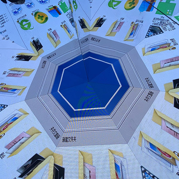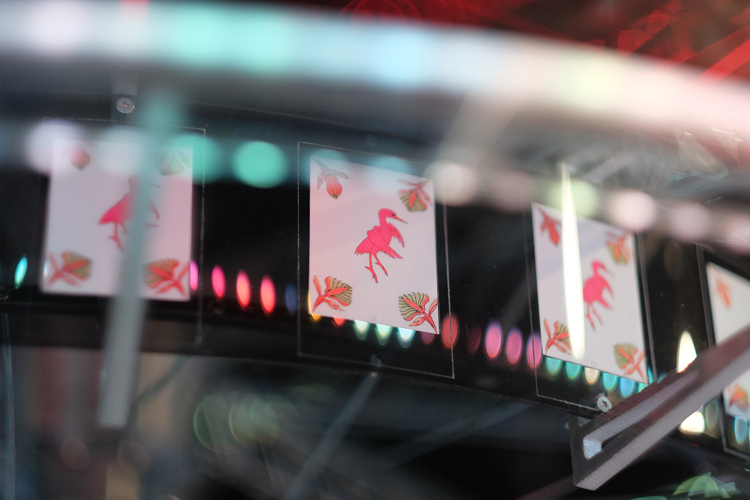 作品将壁画中静态的元素如花草、鸟兽、装饰等进行选取重构,置于三棱镜空间内,利用物理光的折射原理,使壁画中不易被注意到的元素呈现动态效果,每一秒都能给观众带来意想不到的绚丽视觉体验。