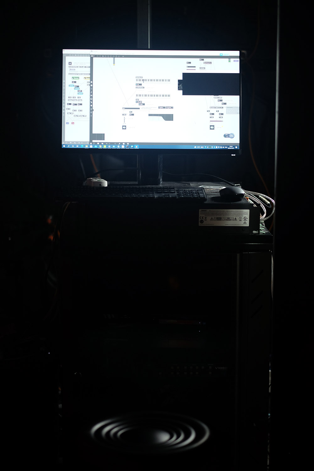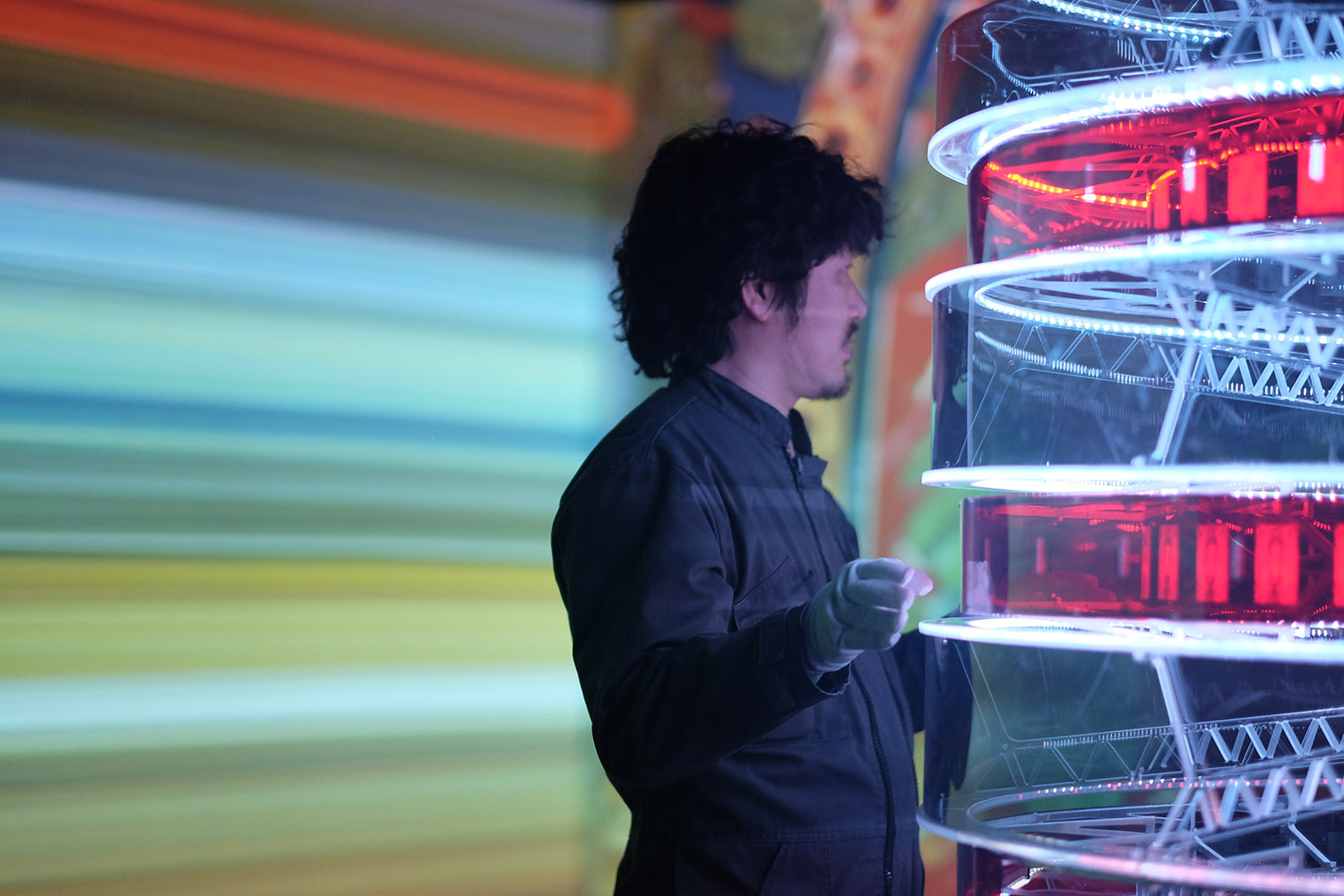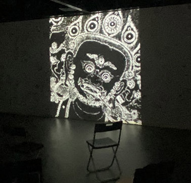 "... ...转速传感测量、实时音频合成、LED灯光与影像的映射、基于数字控制的沉浸式影像等等,这些技术和元素从表面看与年代久远的西藏壁画似乎没有关联,甚至是格格不入的。我们试图探索一种不直接引用传统经典中的元素,而在气质上依然与经典产生呼应的可能性。同时,也是为了表达那些远古的精神依然与我们同在。