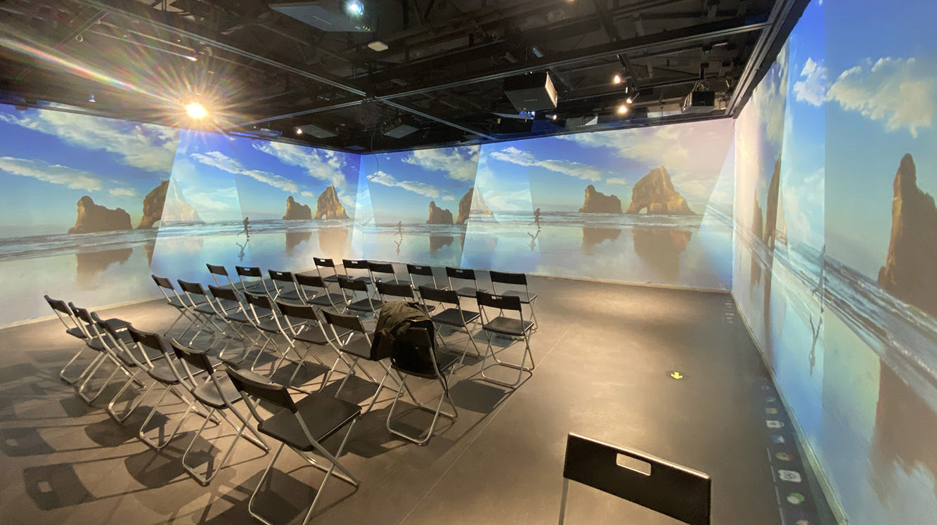 创作营老师与馆方进行碰头开会,讨论数字壁画展示的方向。