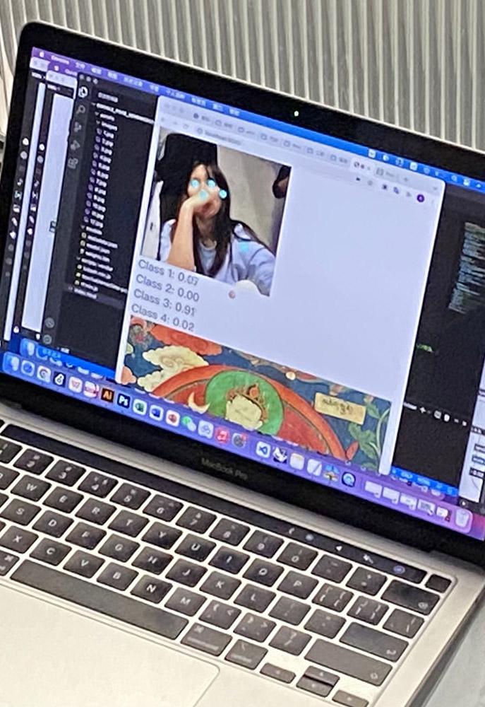 作品灵感来源于《心经》“照见五蕴皆空”,观众在洗手的同时,可以看见镜中的佛像与本人影像跟随观众肢体动作实时生成、聚散变幻,没有永恒不变的存在,作品的视觉艺术效果与无常、空性相应。